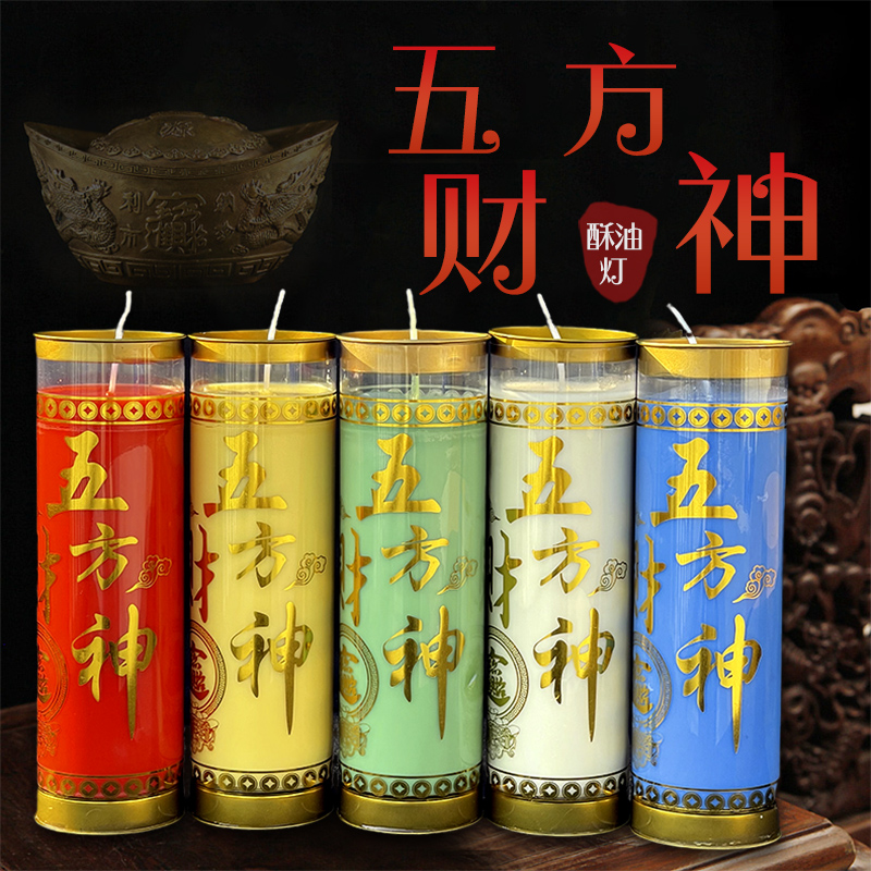 五方财神酥油灯五路发财3天斗烛供灯供神招财进宝蜡烛家用