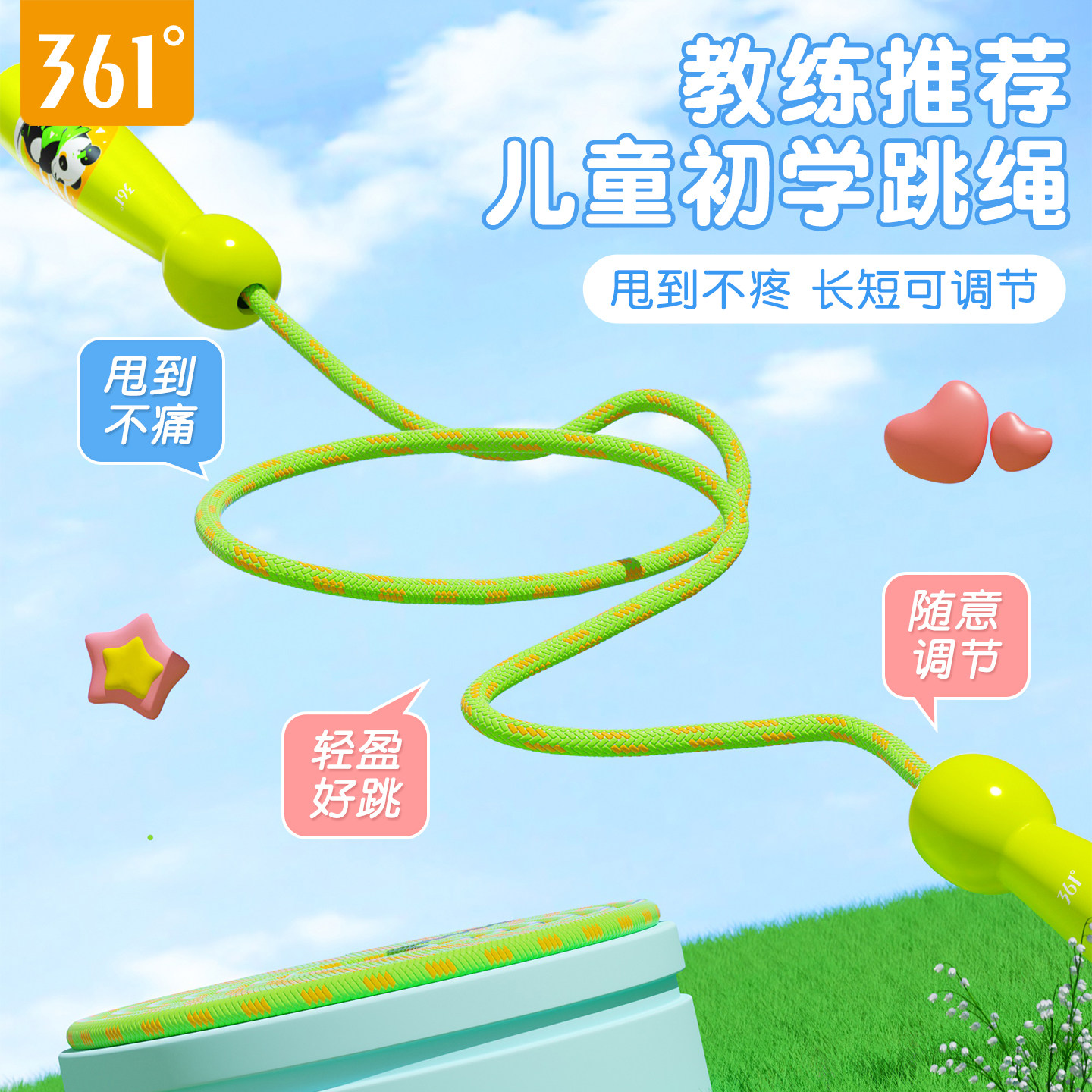 361度儿童跳绳棉绳子初学小学生宝宝运动不打结一年级幼儿园专用