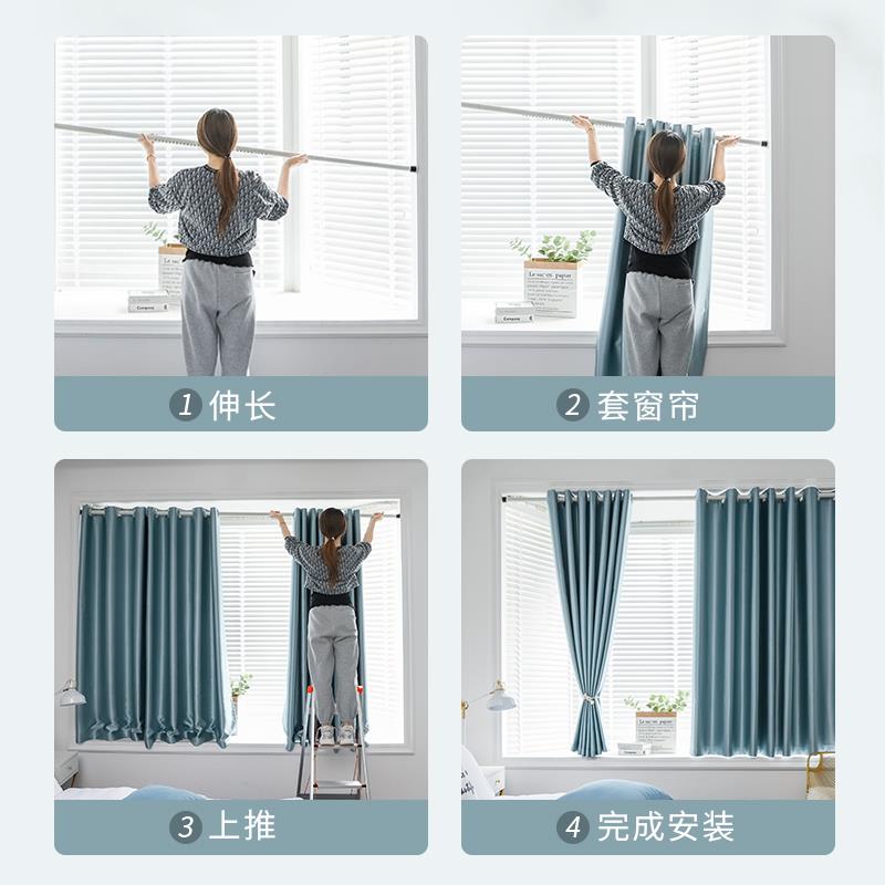 卧室窗帘全遮光免打孔安装伸缩杆一整套客厅飘窗遮阳布2022年新款