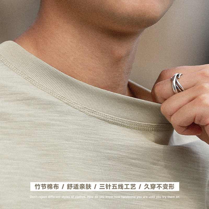 330g重磅嘿马七作日系秋冬款竹节无感纯色长袖T恤男士简约打底衫