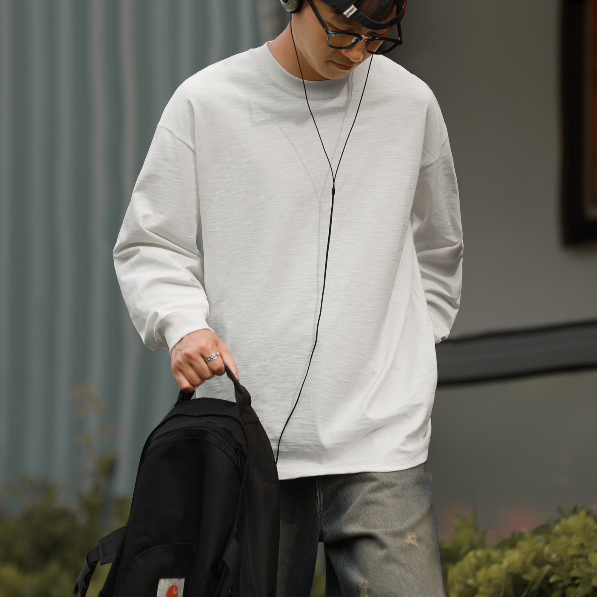330g重磅嘿马七作竹节长袖T恤