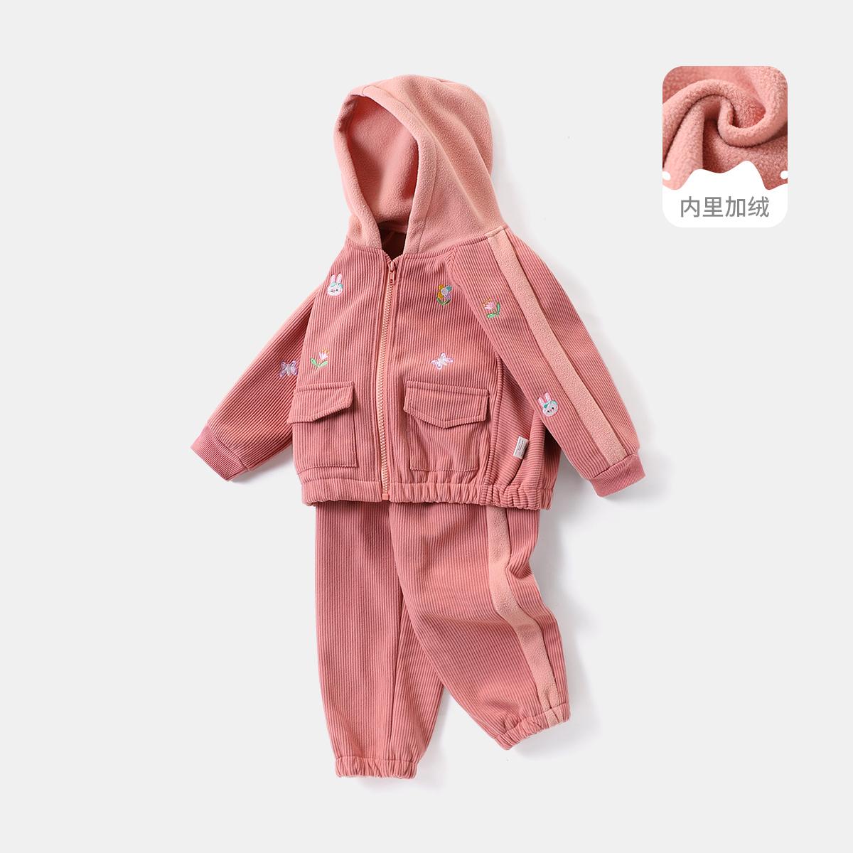 【复古学院风灯芯绒】童装女童秋冬季休闲运动套装儿童连帽加绒款