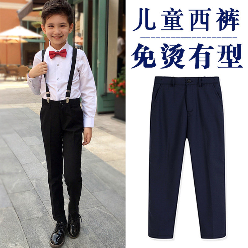 儿童加绒西裤藏青色男童女童深灰色白色西装裤校服裤子小学生秋冬