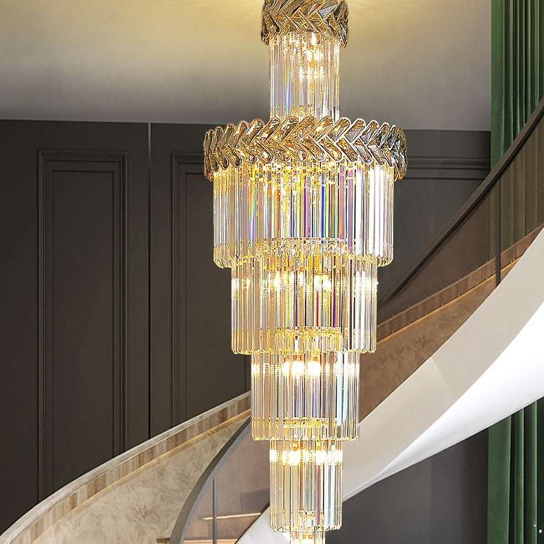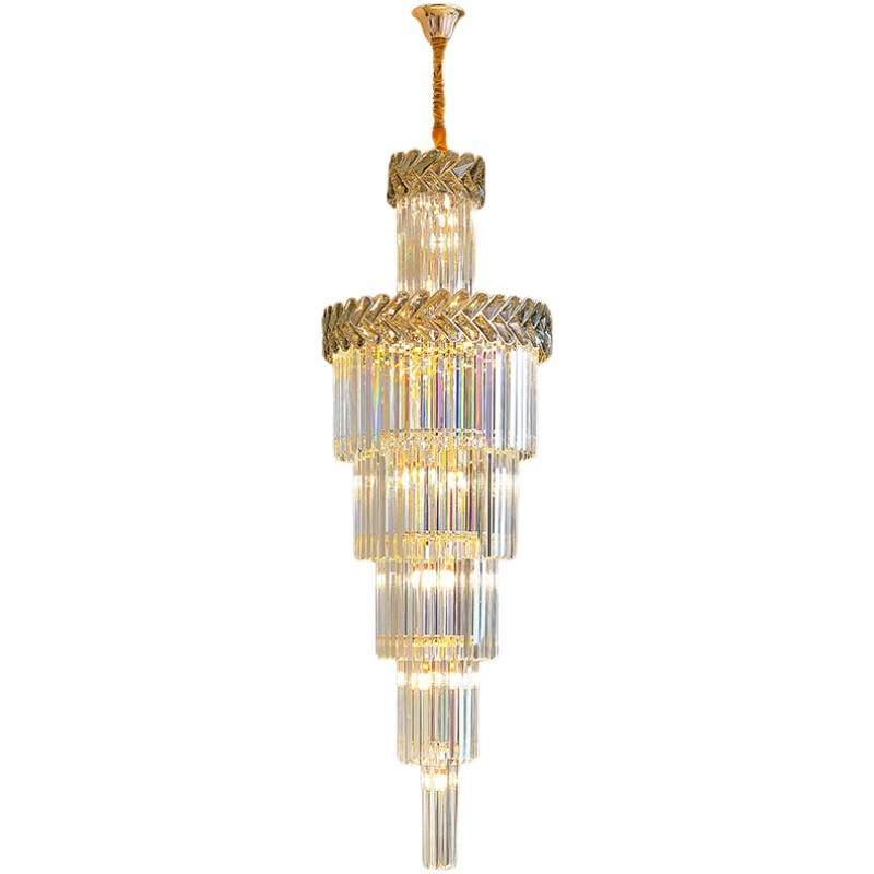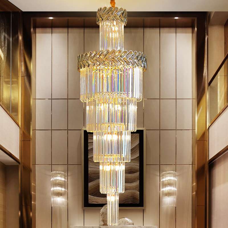复式楼大吊灯现代简约北欧别墅客厅中空旋转轻奢水晶楼梯灯长吊灯