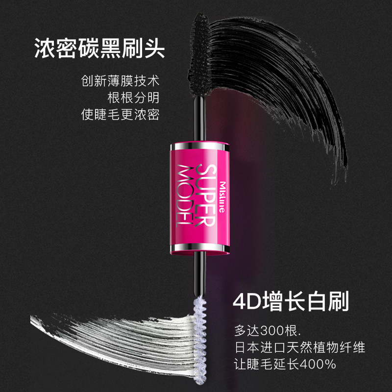泰国mistine睫毛膏防水纤长卷翘加长加密超长双头4d不晕染正品女