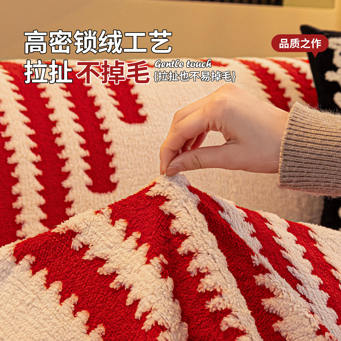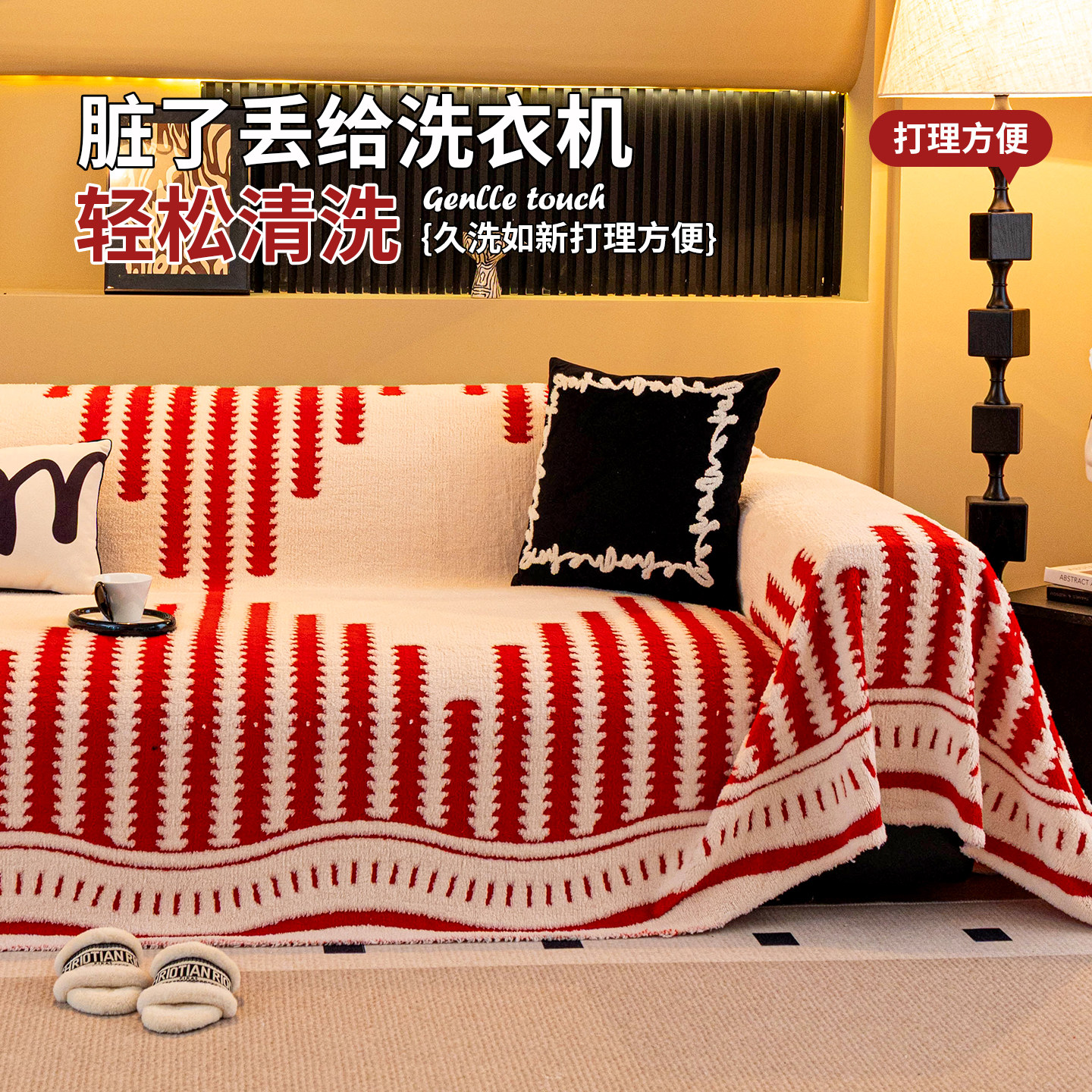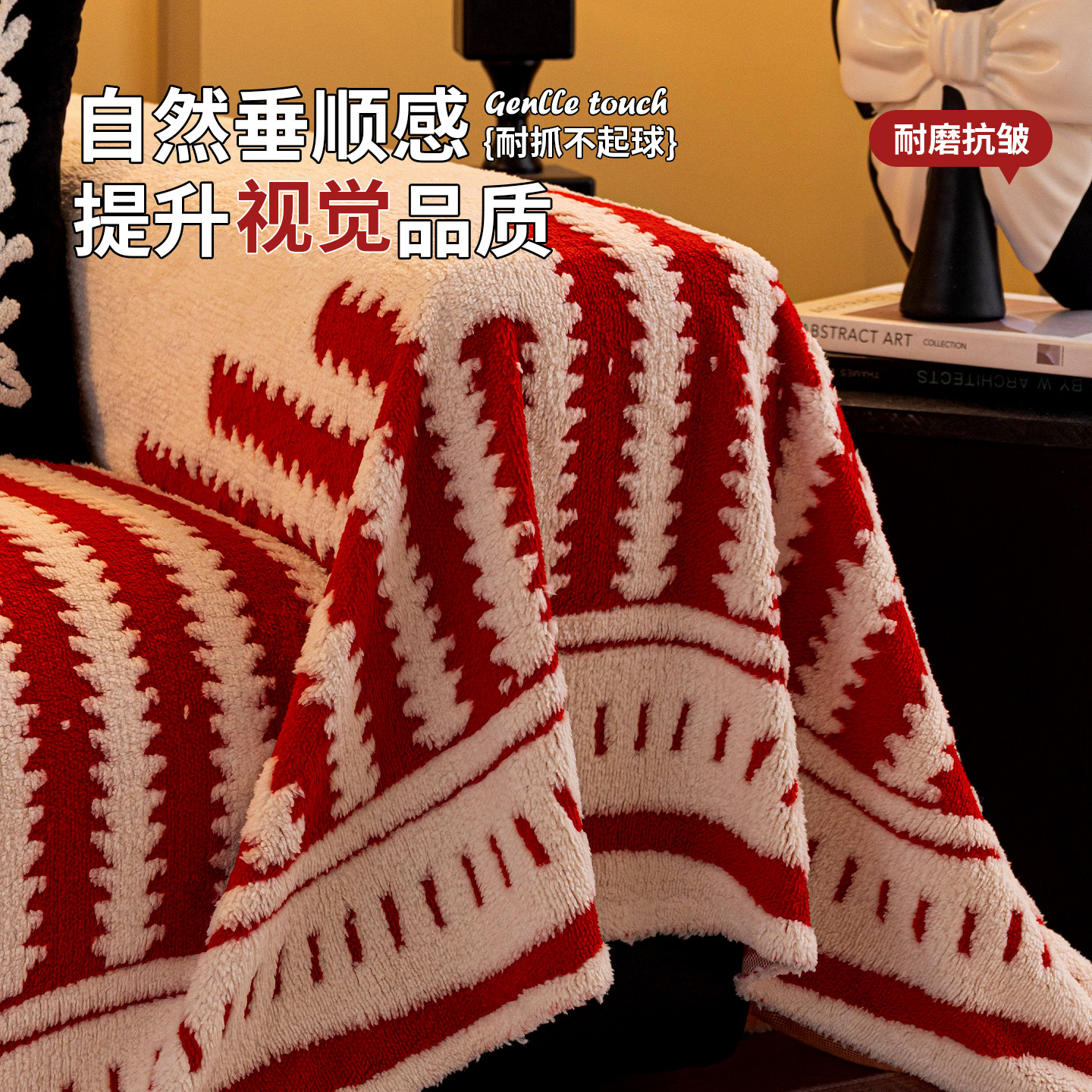 婚庆节日红色喜庆毛绒全包沙发巾盖布2026冬季新款防猫抓沙发套罩
