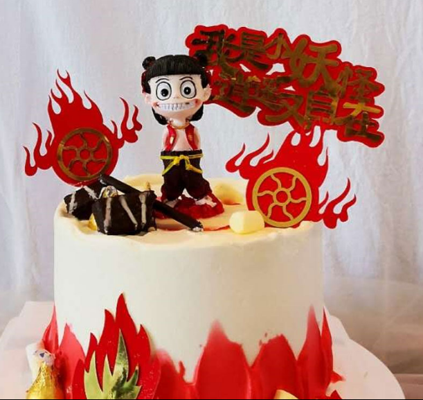 哪吒蛋糕装饰摆件魔童降世生日蛋糕摆件网红儿童卡通公仔人物插件