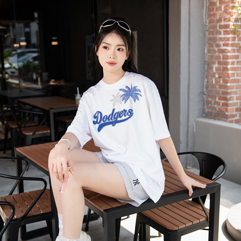 MLB官方 圆领印花短袖男装女装新款透气休闲运动T恤复古半袖潮