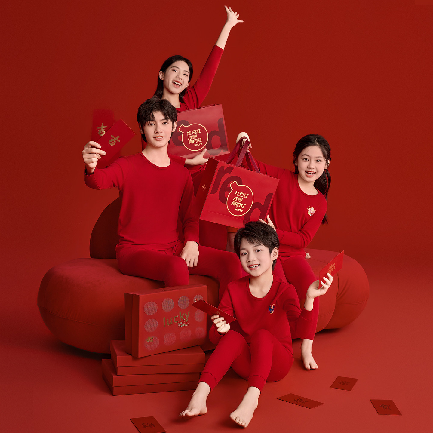 红豆儿童本命年内衣套装礼盒纯棉男女童12岁红色马年保暖秋衣秋裤