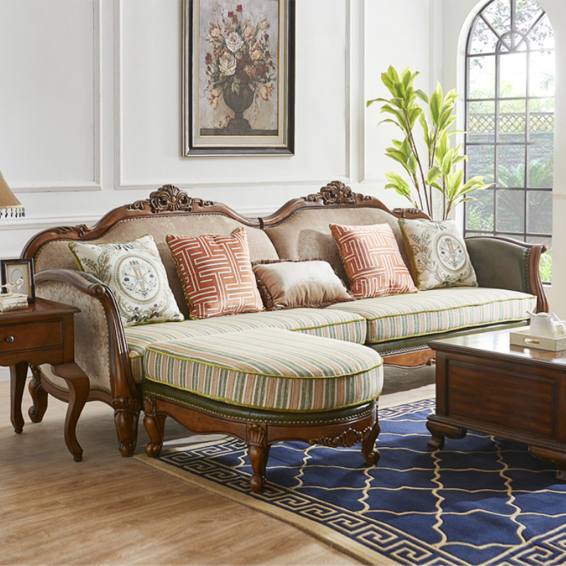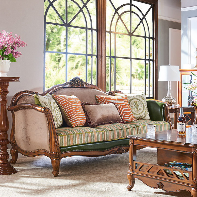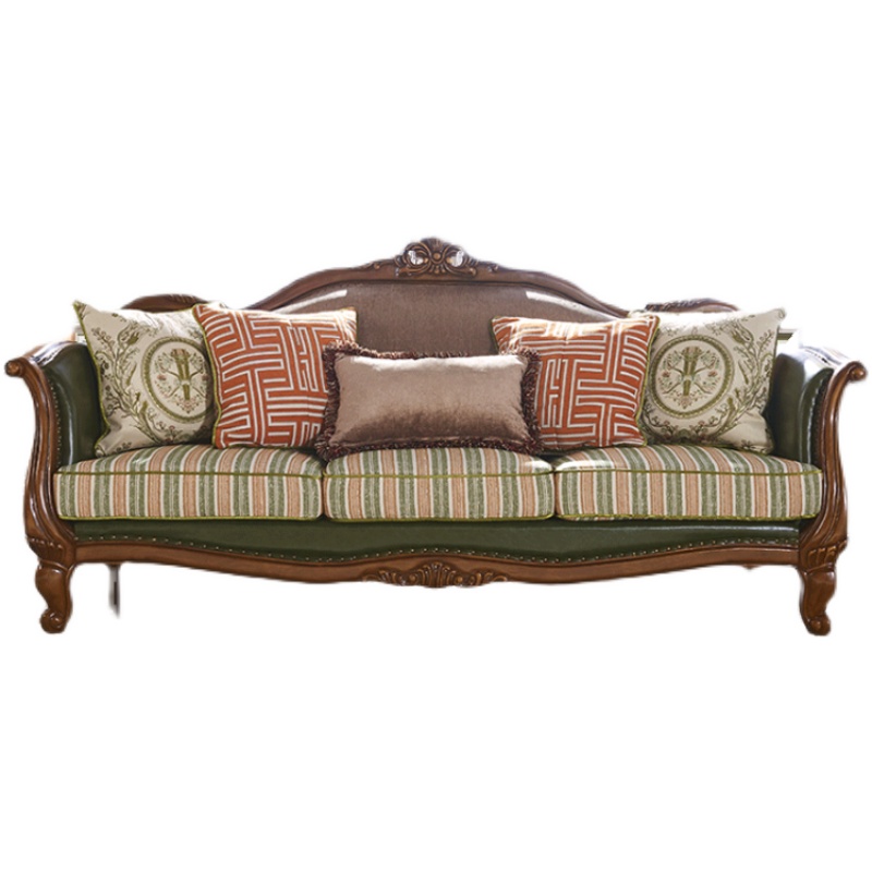 美式真皮布艺简约复古实木沙发