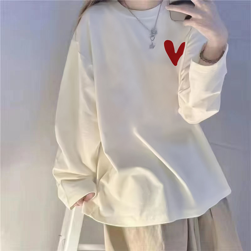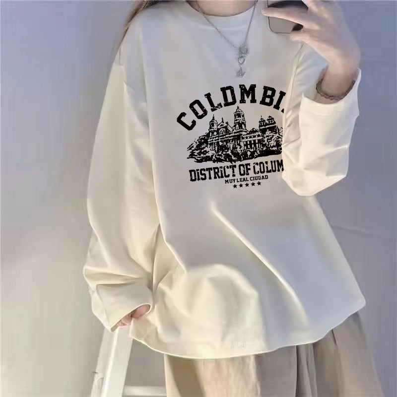 纯棉长袖t恤女大码女装白色加绒内搭打底衫女宽松显瘦秋上衣新款
