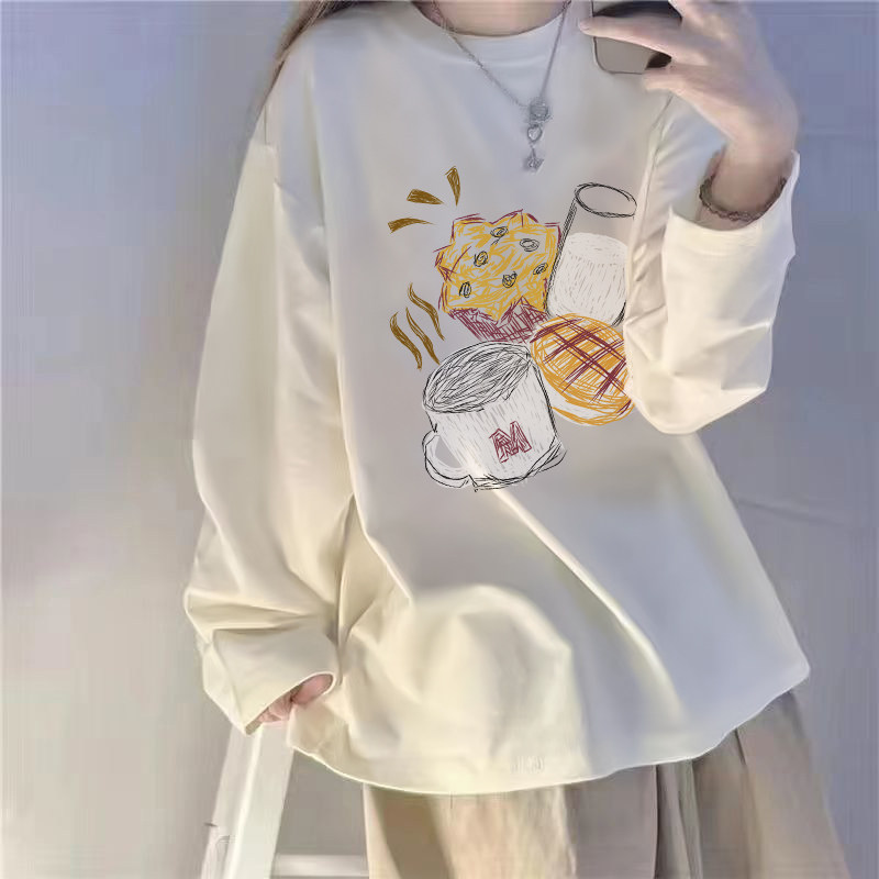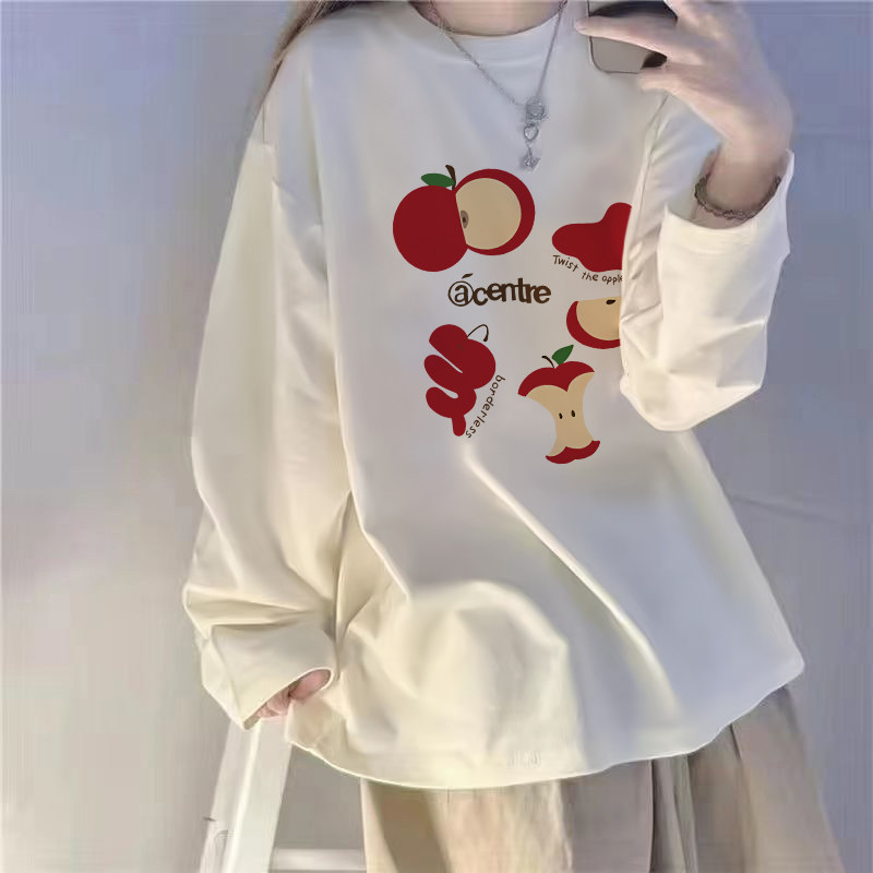 纯棉白色加绒打底衫女春秋