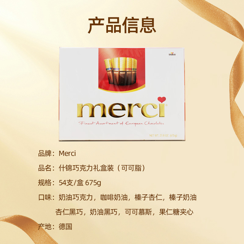美国直邮 MERCI什锦果仁巧克力675g零食礼盒礼物混合可可脂糖果