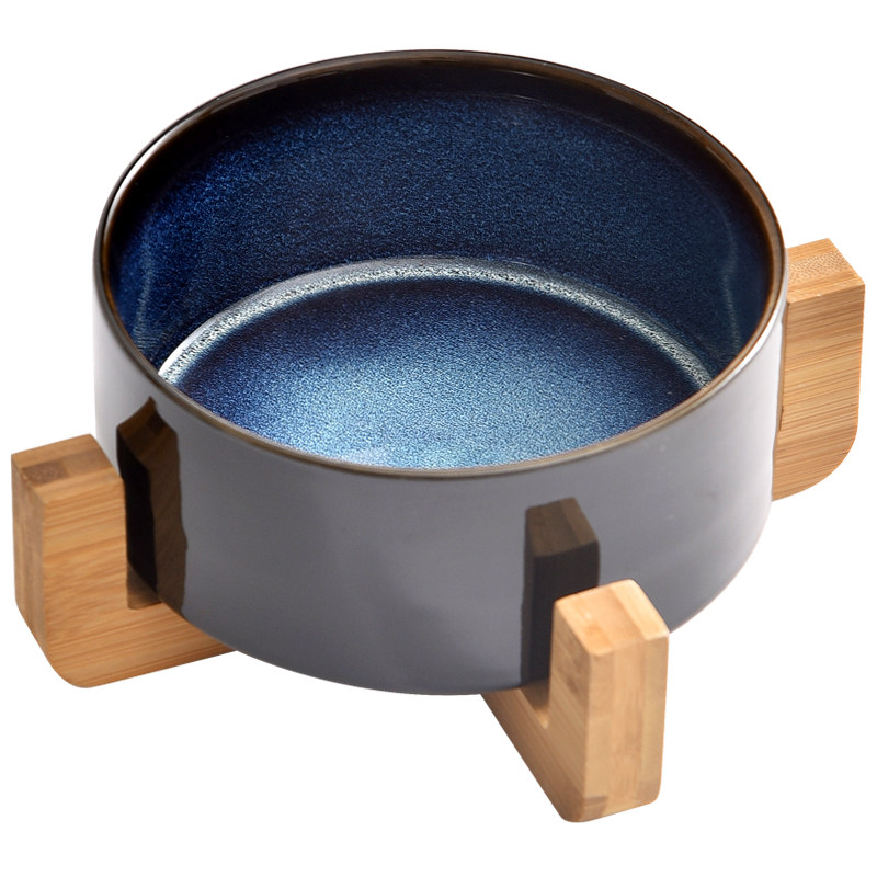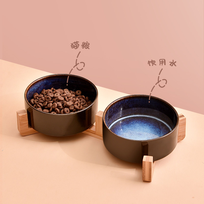 陶瓷猫碗保护颈椎木架双碗防漏食猫粮碗水碗狗盆狗碗防打翻宠物碗