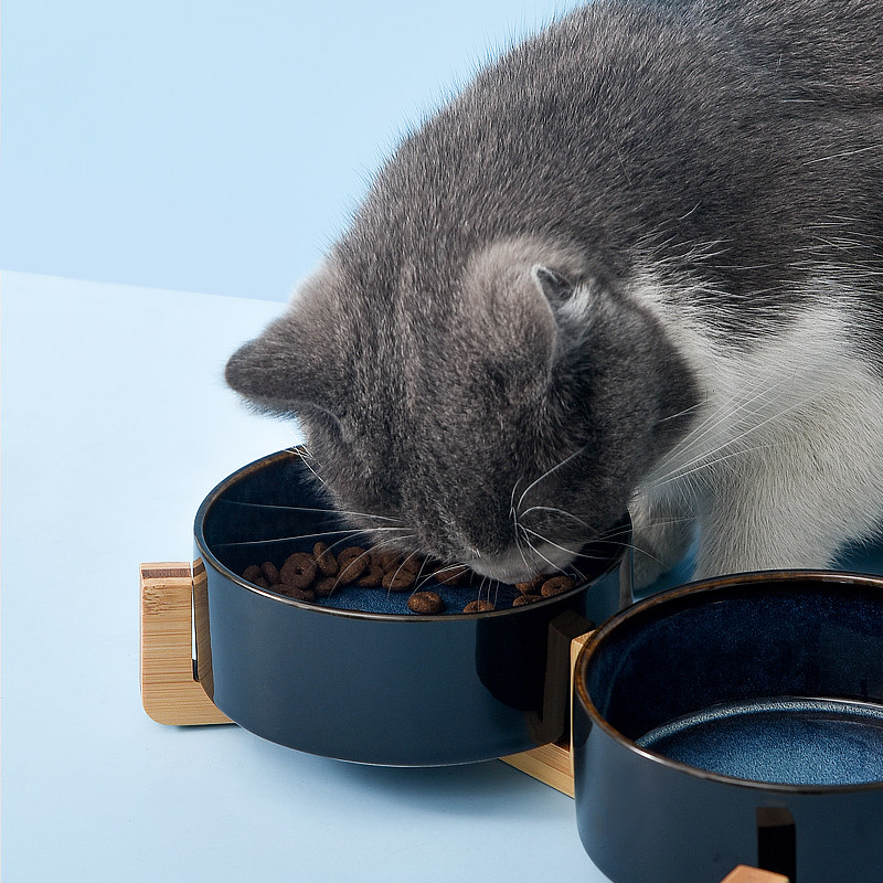 陶瓷猫碗保护颈椎木架防漏