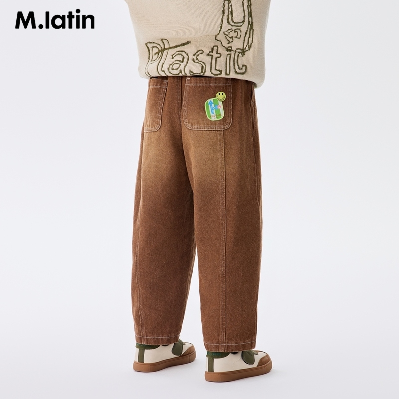 马拉丁童装儿童裤子24冬装新款女童大童趣味徽标内里保暖牛仔长裤
