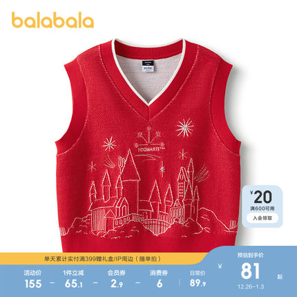【哈利波特IP】巴拉巴拉儿童马甲女童背心男童2025新款春秋潮红色