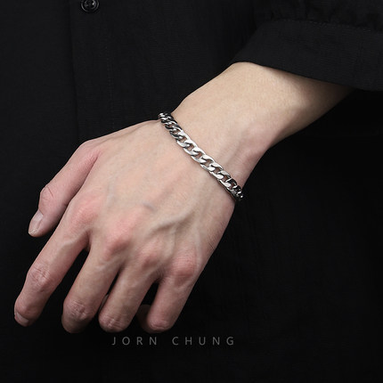 钛钢不掉色古巴链银色简约高级感男女个性街头嘻哈风潮人饰品手链