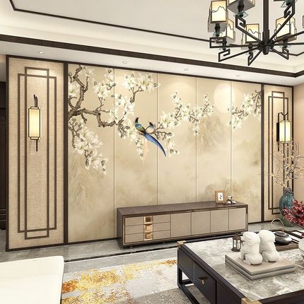 新中式花鸟刺绣硬包山水电视背景墙客厅沙发影视软包卧室床头独绣