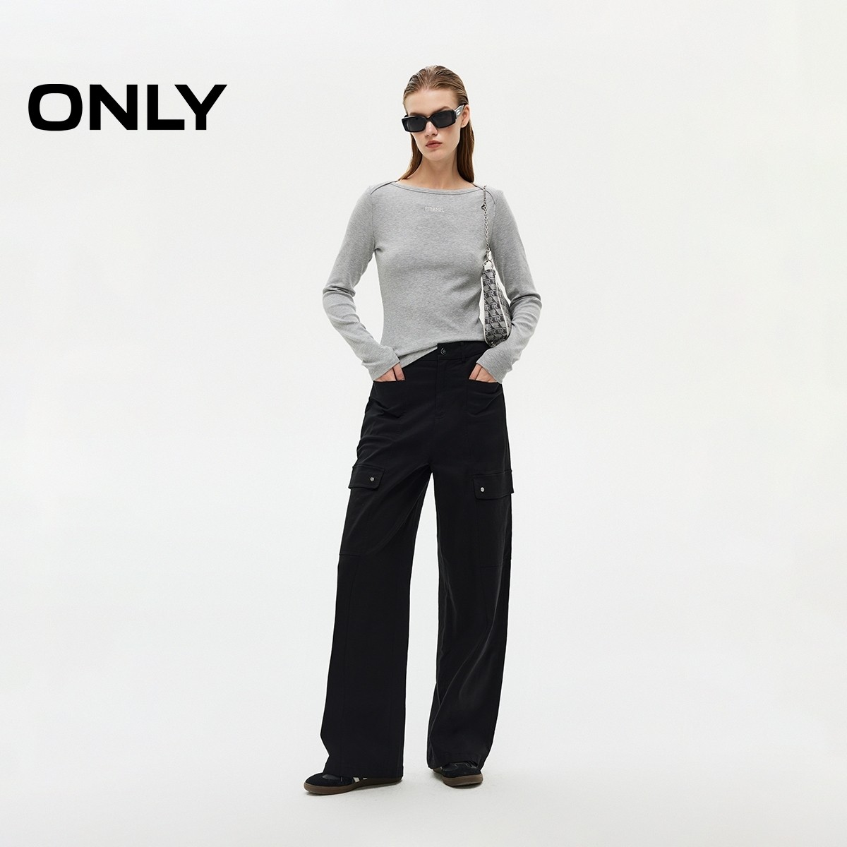 ONLY2025冬新款立裁包肩设计长袖打底衫正肩T恤女|125302004