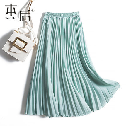18533 高腰雪纺半身裙女春秋垂感及裸长裙百搭a字裙风琴百褶裙