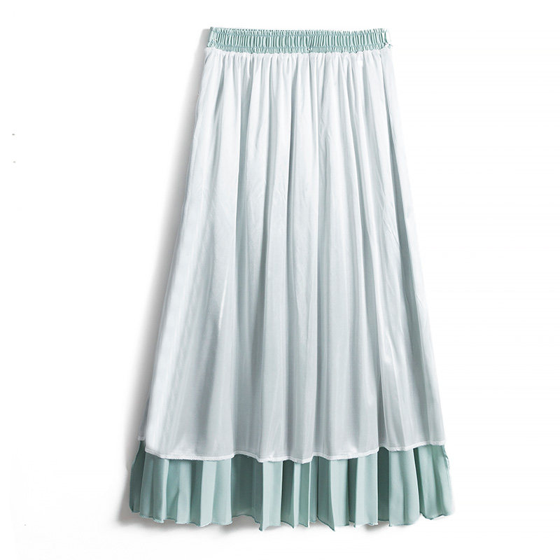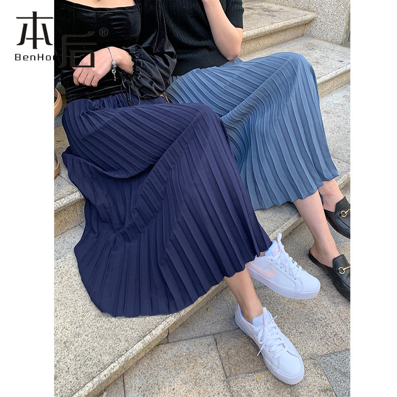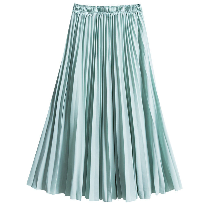 18533垂坠高腰a型百褶裙长裙