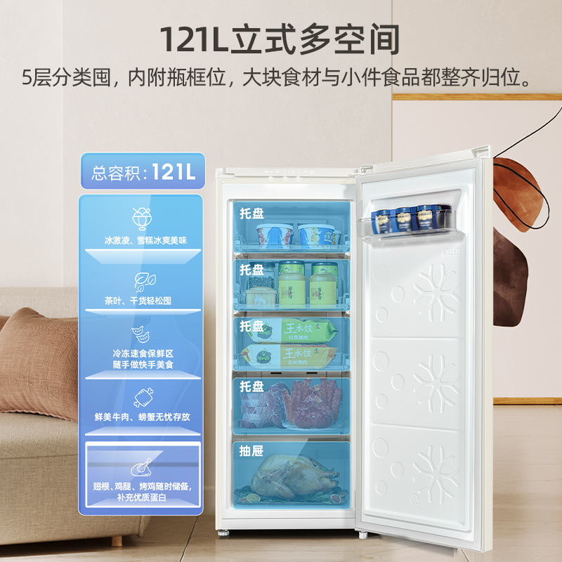 【政府补贴20%】美菱121L立式冰柜白色复古家用小型一级风冷无霜