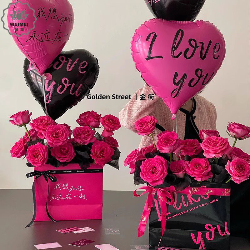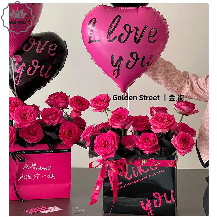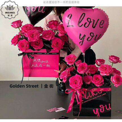 情人节520花束手捧袋网红抱抱袋礼品盒花艺插花袋diy花店鲜花包装
