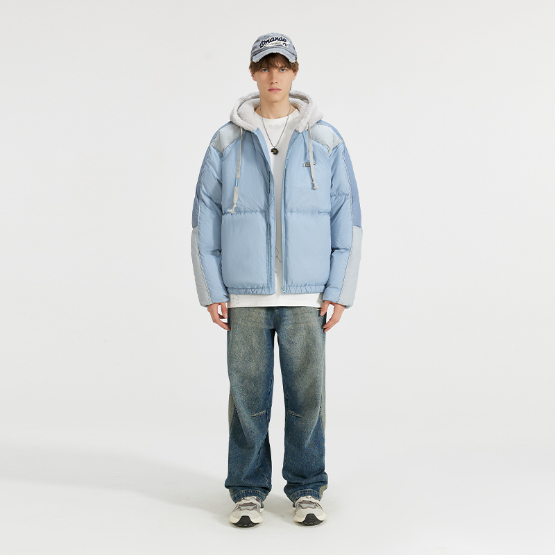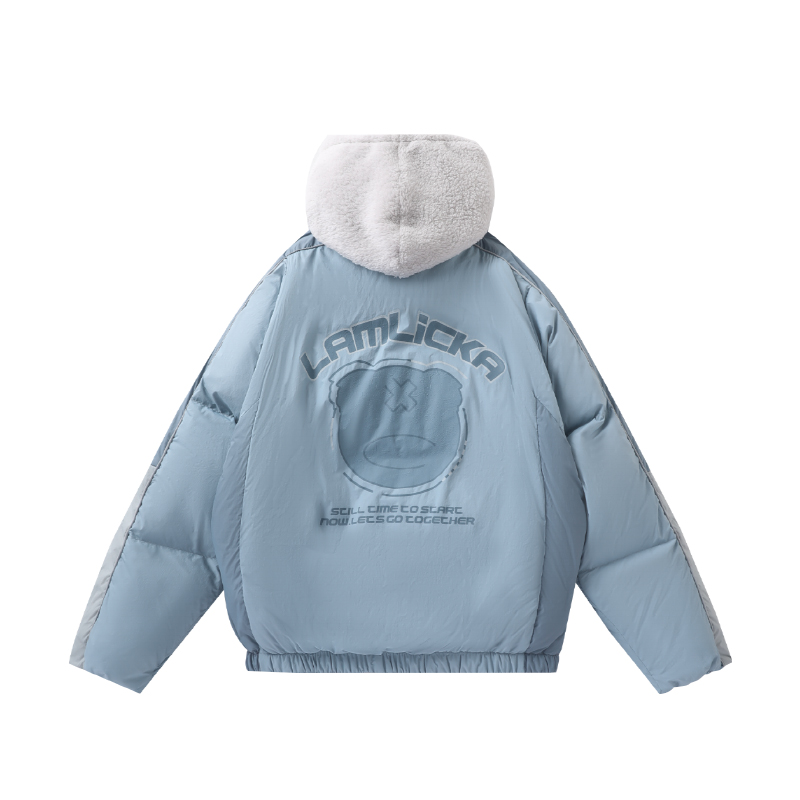 LAMLICKA冬季加厚撞色拼接连帽羽绒服男女潮牌白鸭绒oversize外套