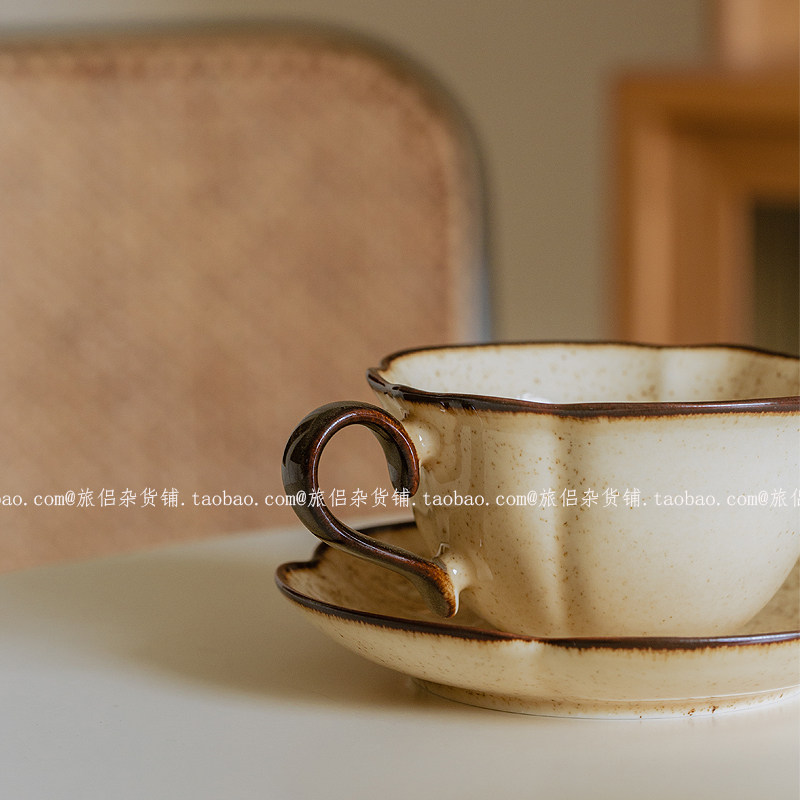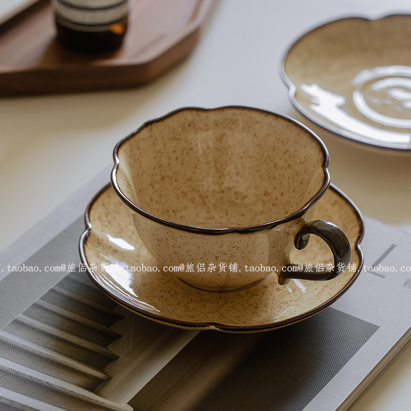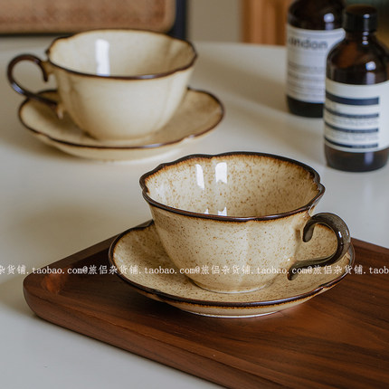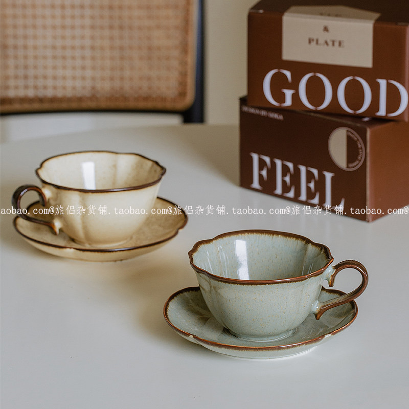 复古窑变釉下彩陶瓷咖啡杯碟拿铁拉花杯下午茶杯碟中古杯