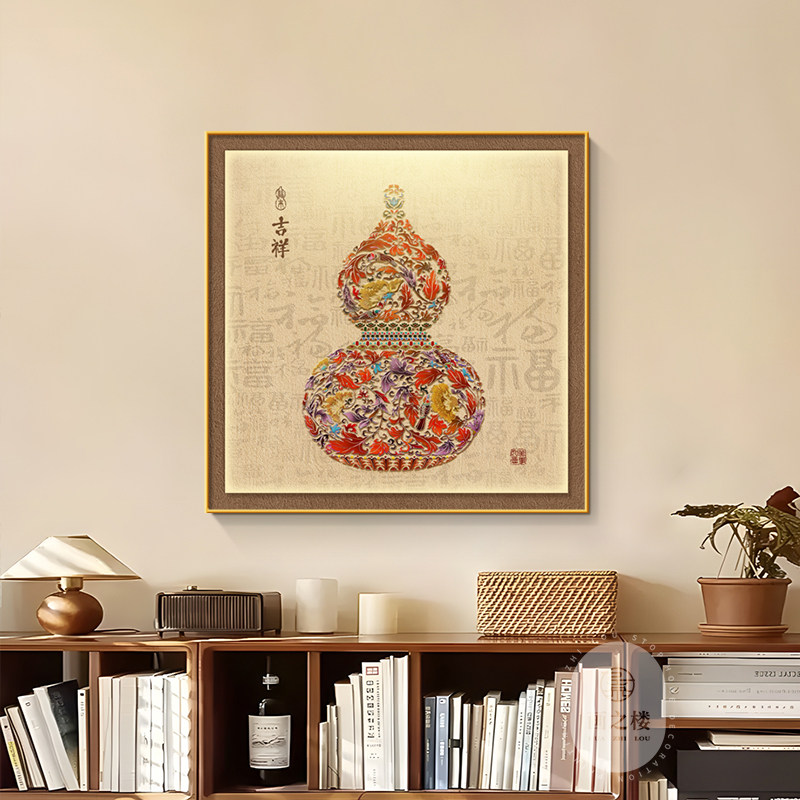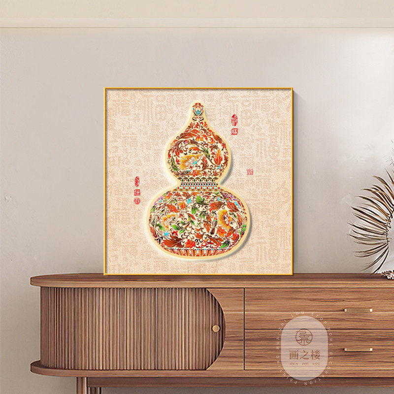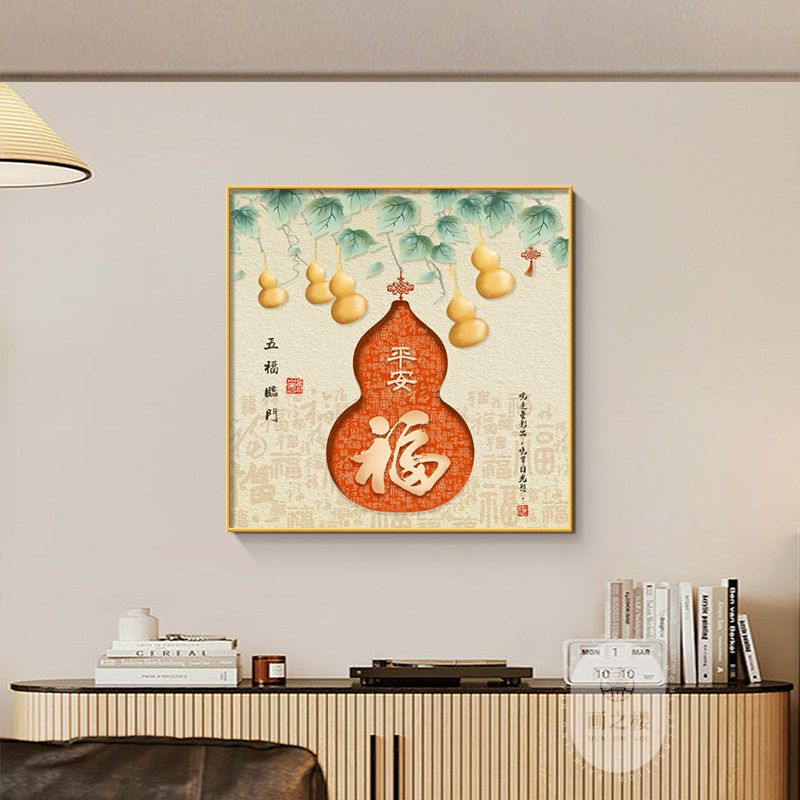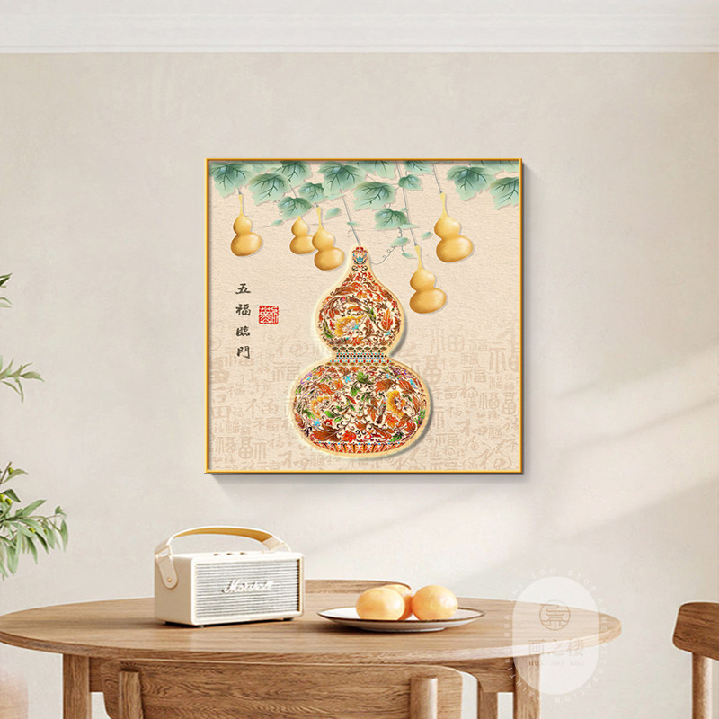 葫芦新中式饭厅餐桌挂画柿柿如意高级感餐厅装饰画寓意好客厅壁画