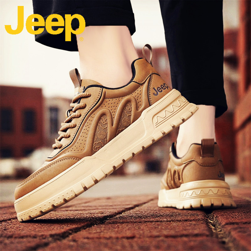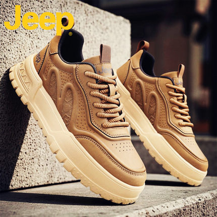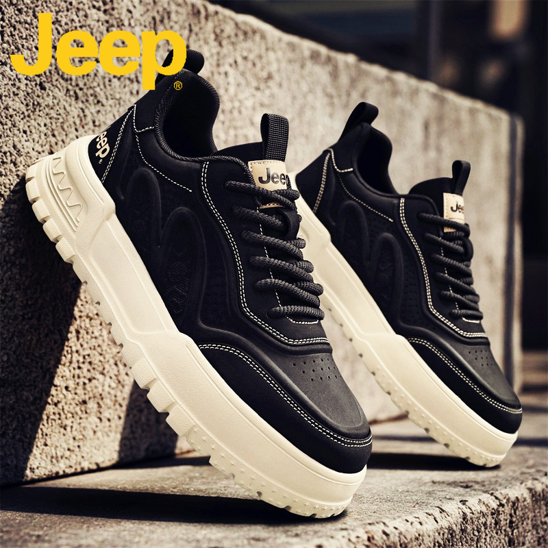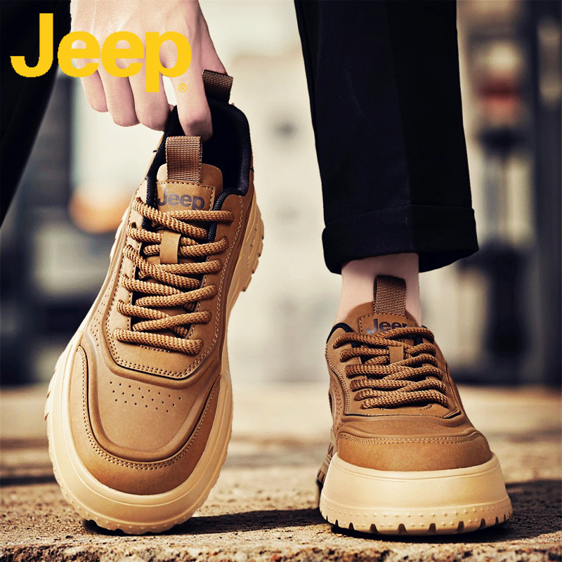 jeep吉普板鞋男士休闲男鞋秋季2025新款真皮软底增高运动鞋子男款