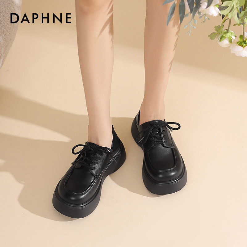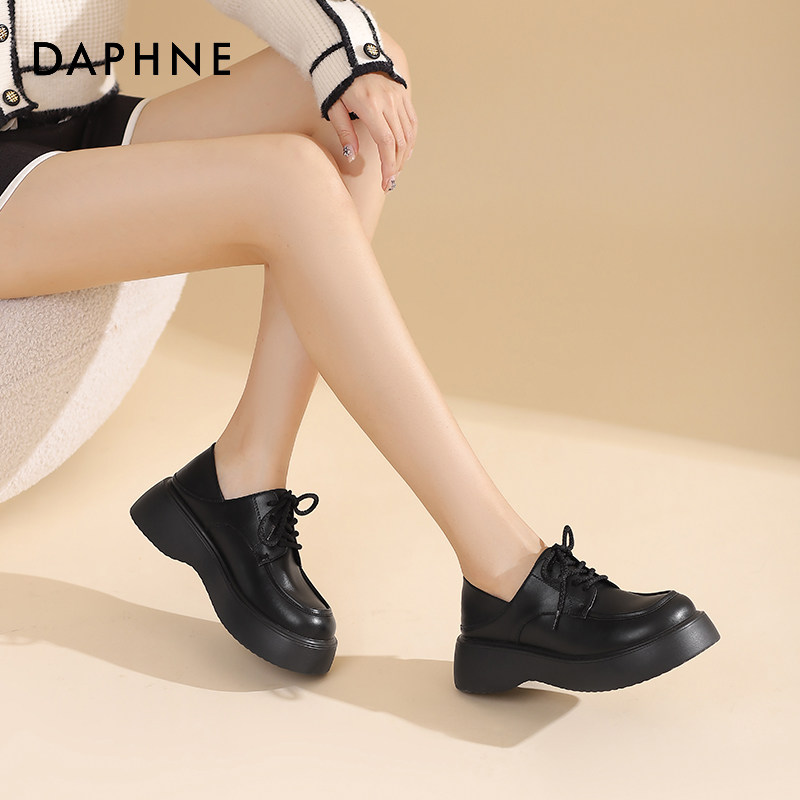 达芙妮厚底乐福鞋女春秋2025新款英伦风系带小皮鞋女圆头单鞋女鞋