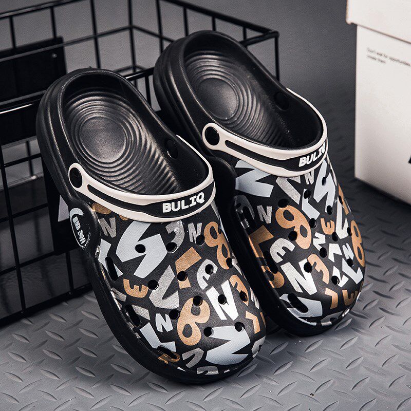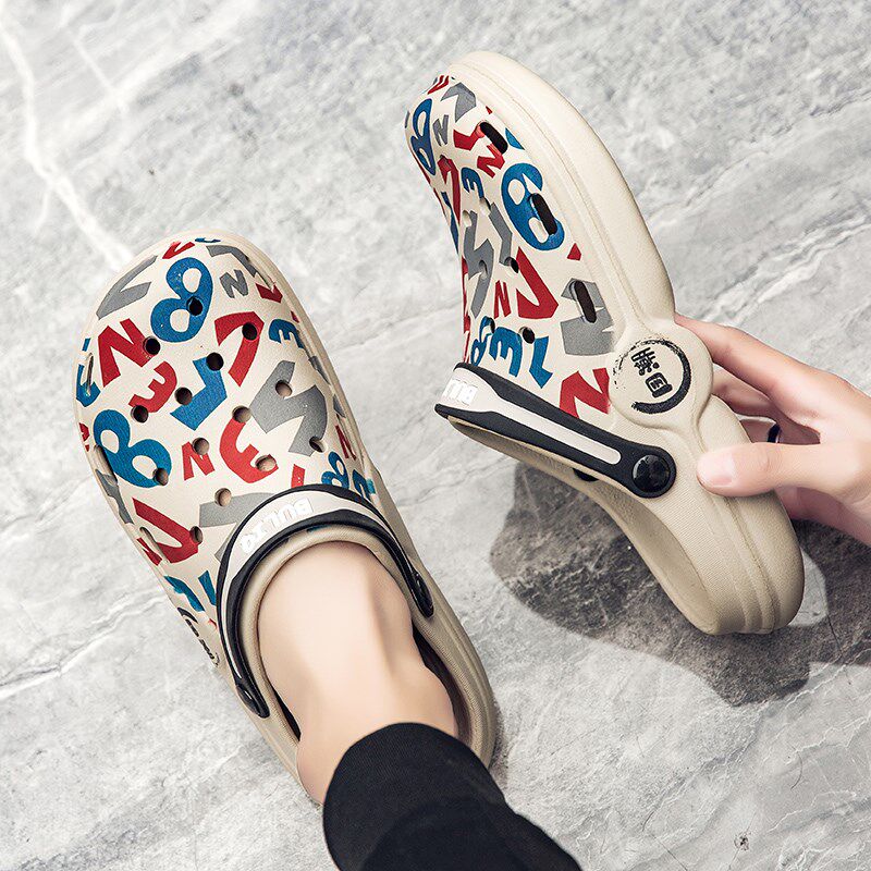35 36 37小码男鞋子涂鸦个性潮流高中小学生洞洞鞋情侣防滑凉拖鞋