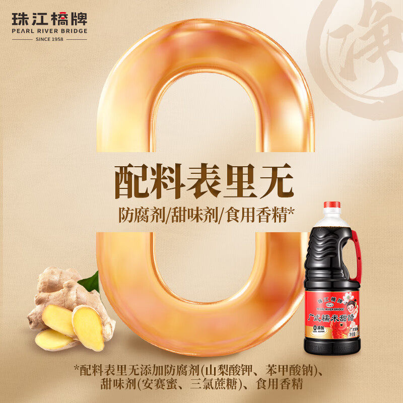 珠江桥牌广式糯米甜醋猪脚姜醋1.9L广东添丁甜醋月子食用黑红米醋