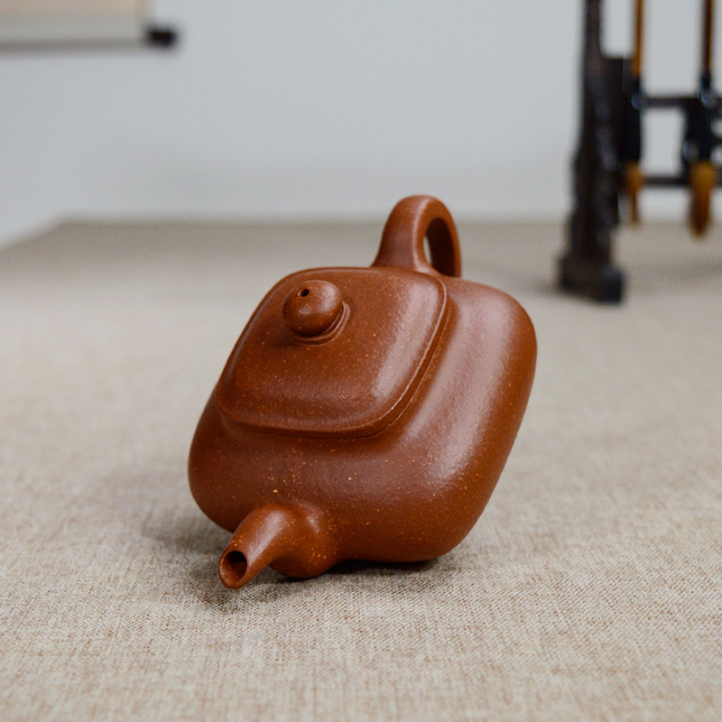 宜兴紫砂壶手工红降坡泥四方传炉130CC家用泡茶壶紫砂功夫茶具