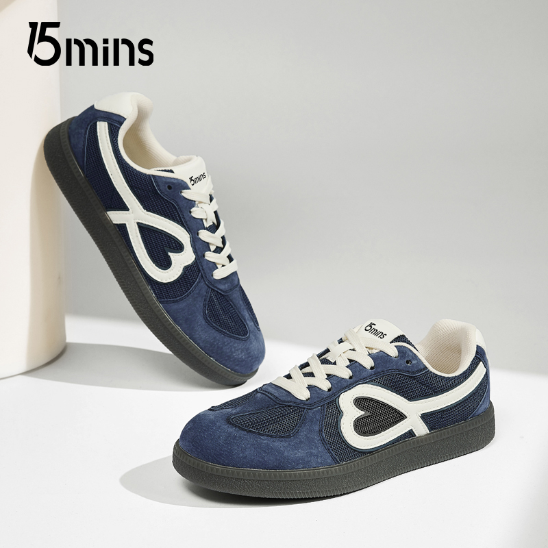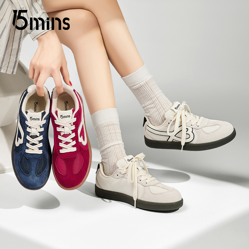 15mins红色德训鞋女2025新款夏季透气网面平底百搭休闲运动板鞋子