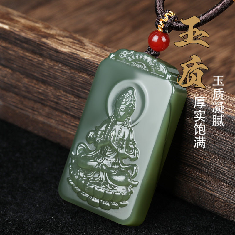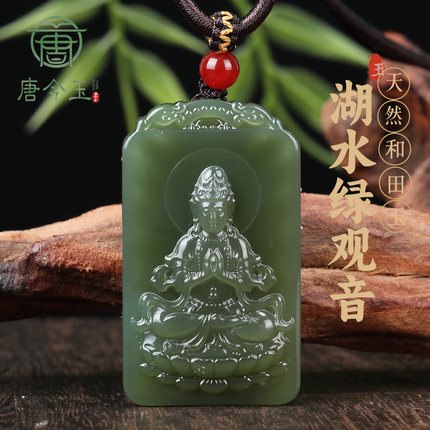 唐今玉新疆和田玉湖水绿观音牌子吊坠男女款玉石观音吊坠玉牌挂件