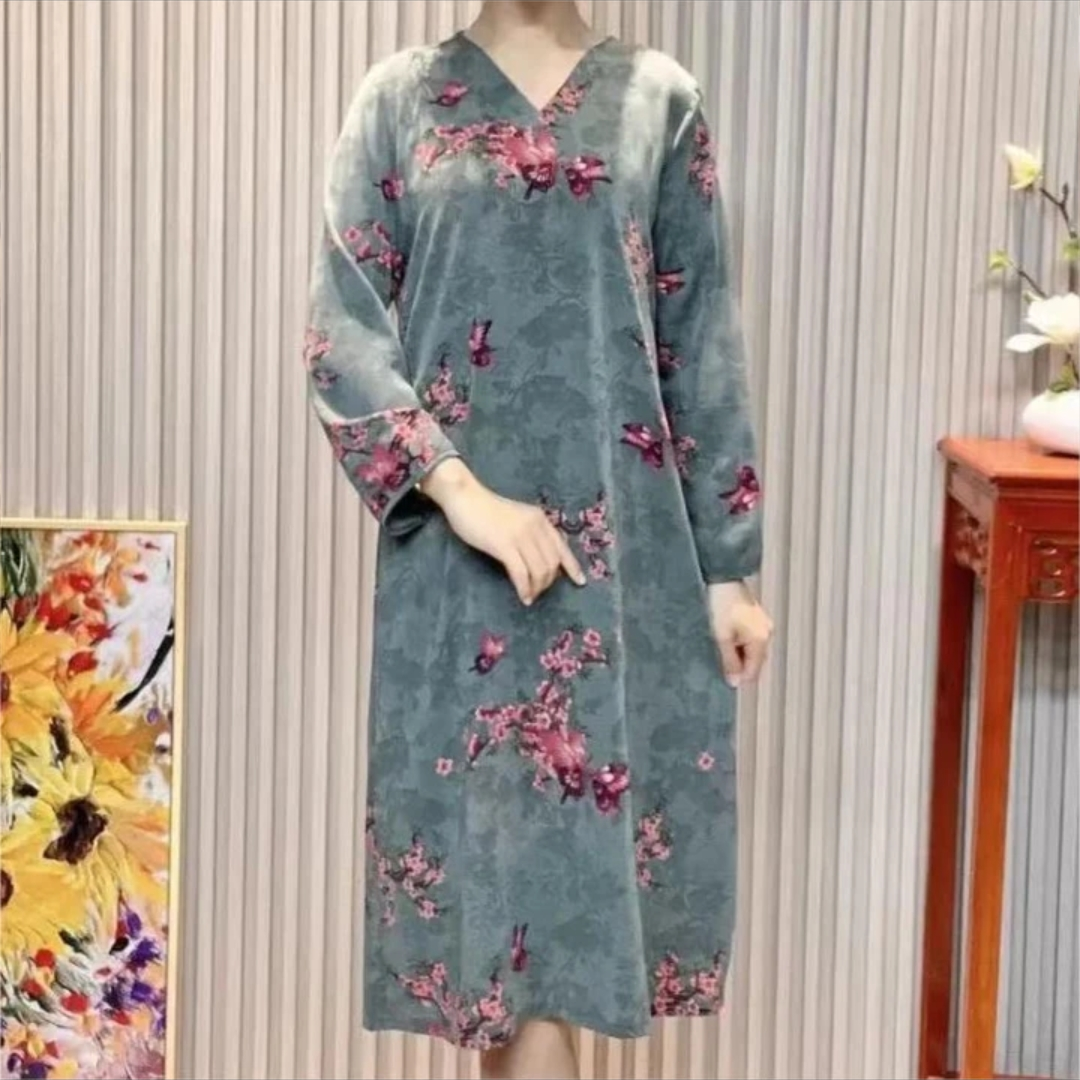 新款轻奢蝴蝶飞香云纱连衣裙修身显瘦中年妈妈礼服长裙