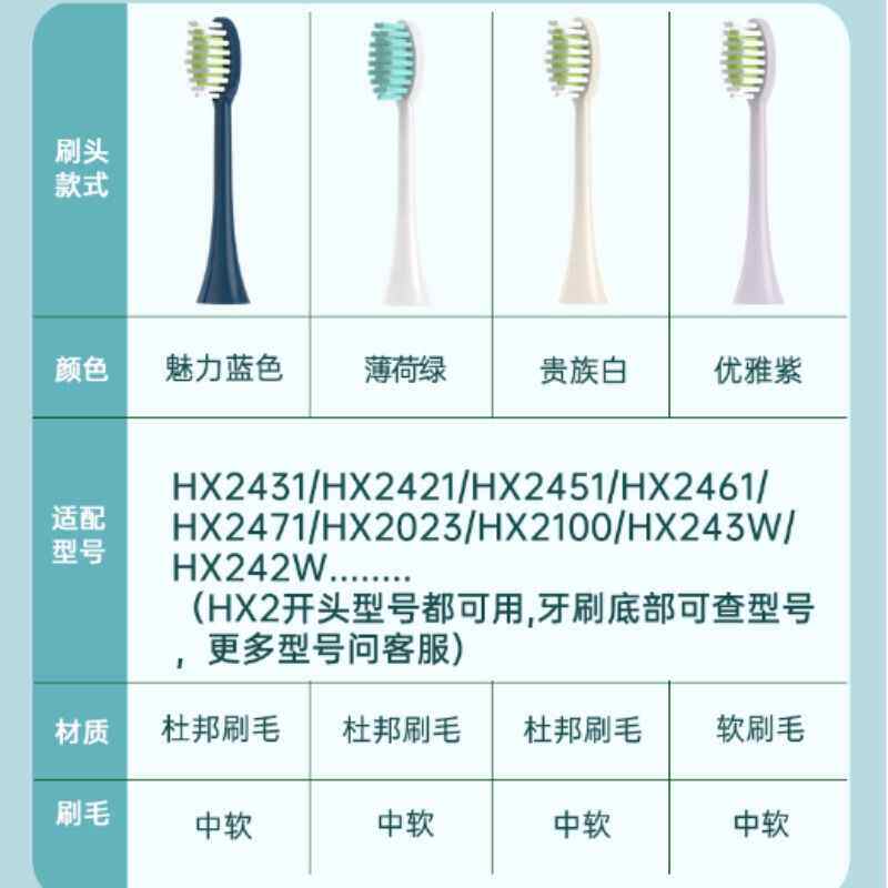 适配飞利浦电动牙刷头HX2421/HX2431W/B/P/L小羽刷HX2451/02/08/F