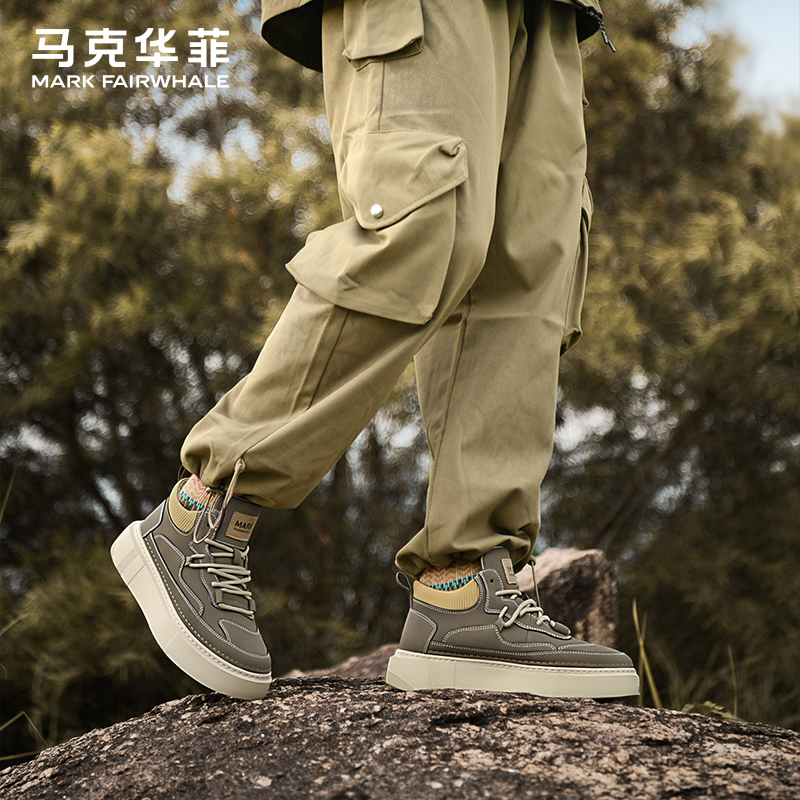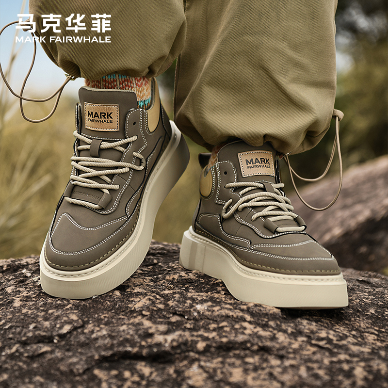 马克华菲男鞋2025新款秋季真皮防滑休闲皮鞋男士厚底百搭运动板鞋