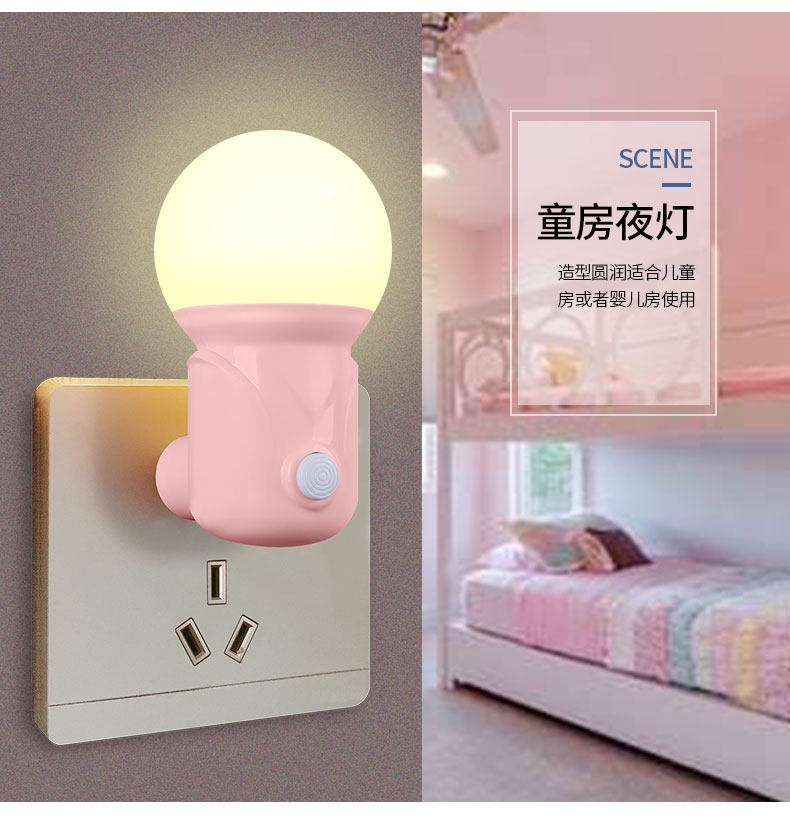 母婴小夜灯插电式开关护眼床头灯卧室婴儿喂奶睡眠学习柔光小台灯