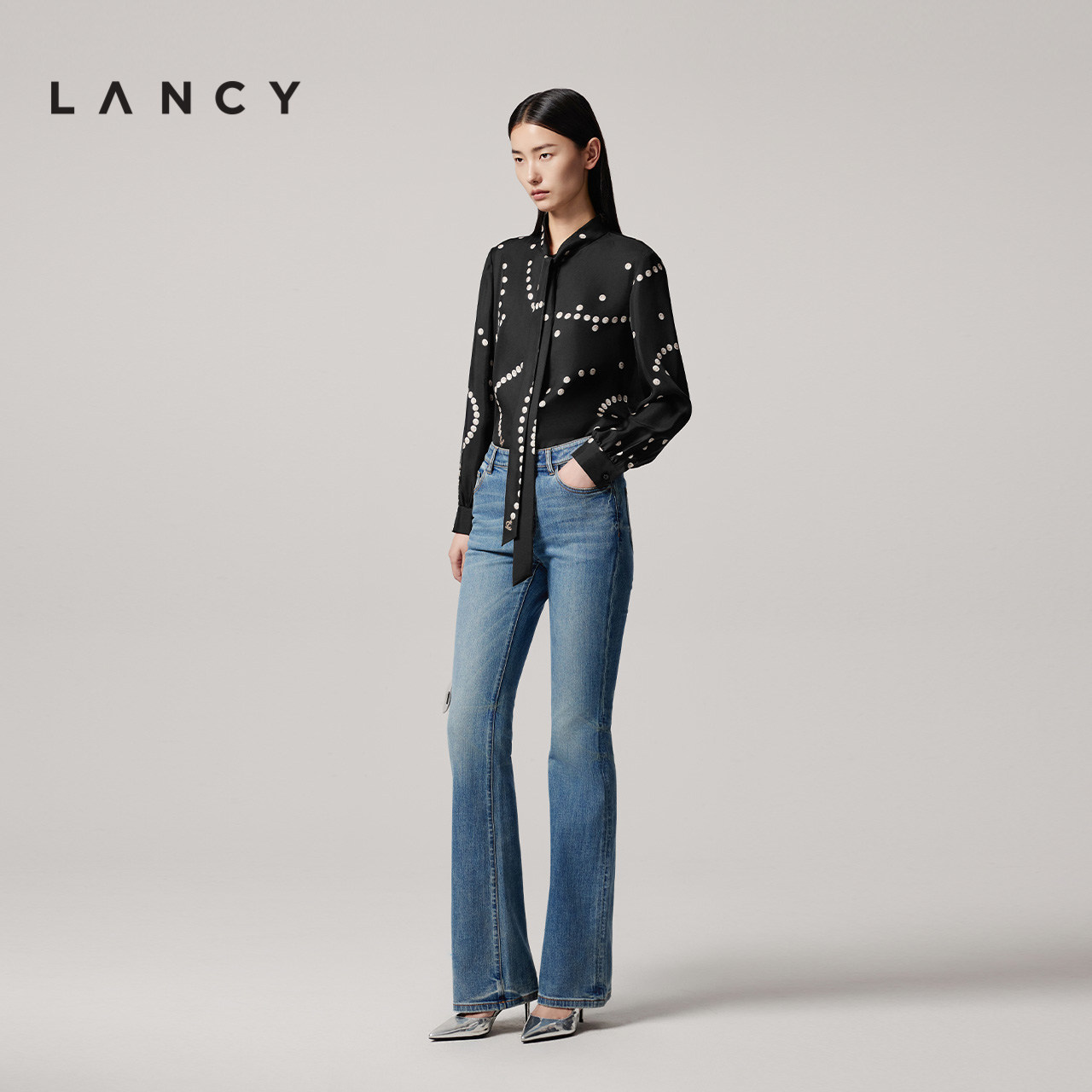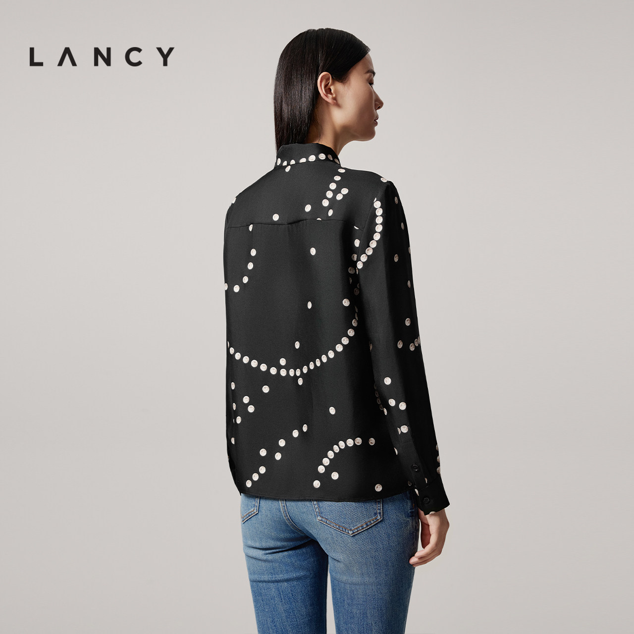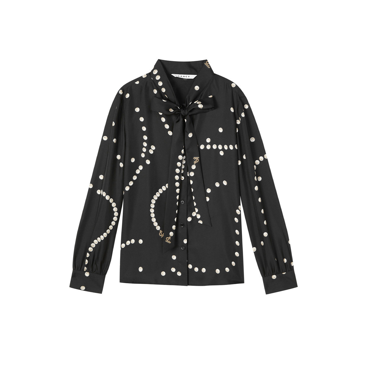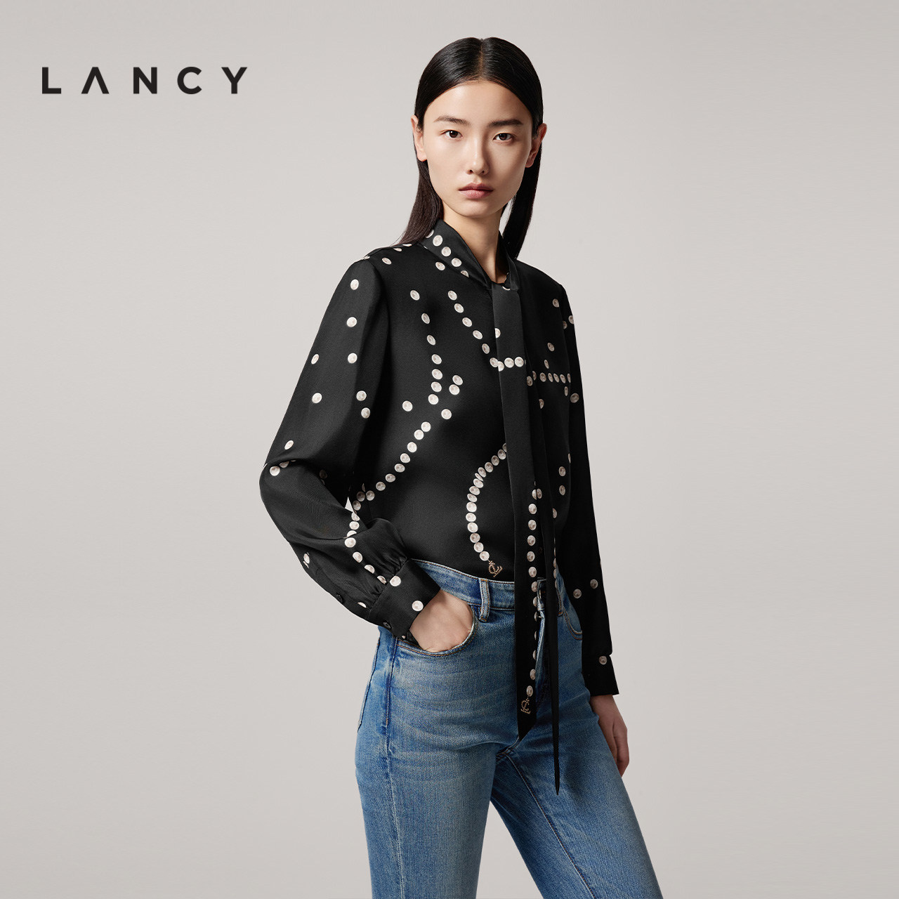【真丝】LANCY/朗姿2025秋新款法式气质飘带100%桑蚕丝波点衬衫女