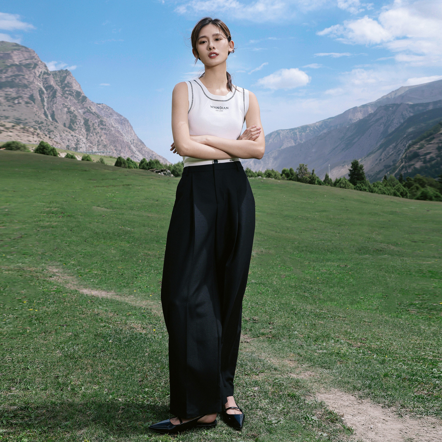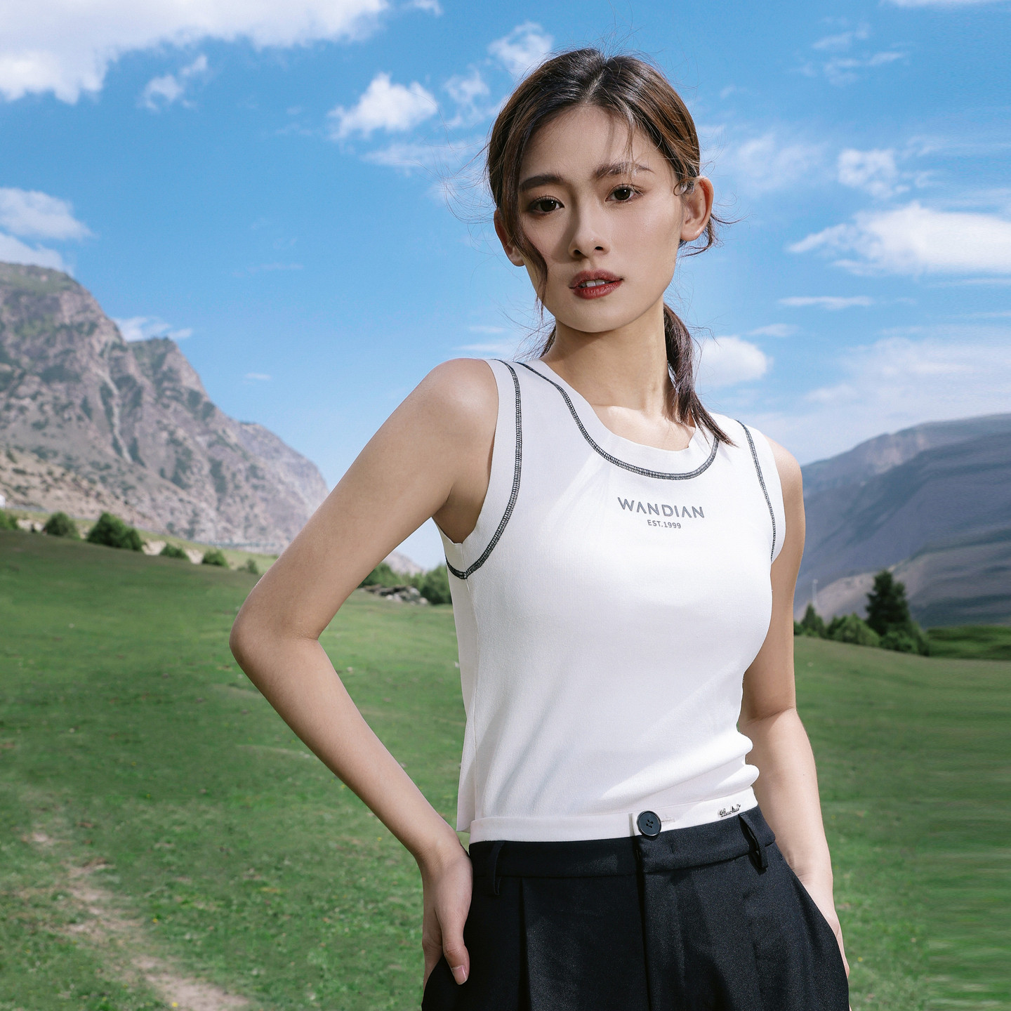 婉甸2026春季新品象牙白/黑色毛织背心1251W36XJAYX