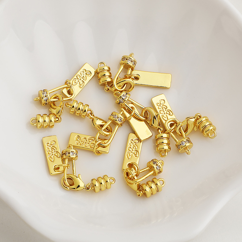 14K包金保色镶锆石龙虾扣收尾扣珍珠手项链连接勾扣diy饰品配件