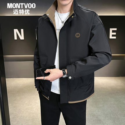 迈特优立领夹克男士2025春季新款拼色美式工装大码上衣外套