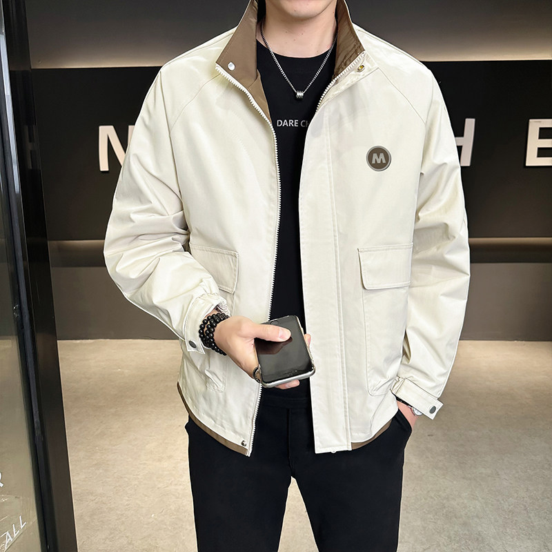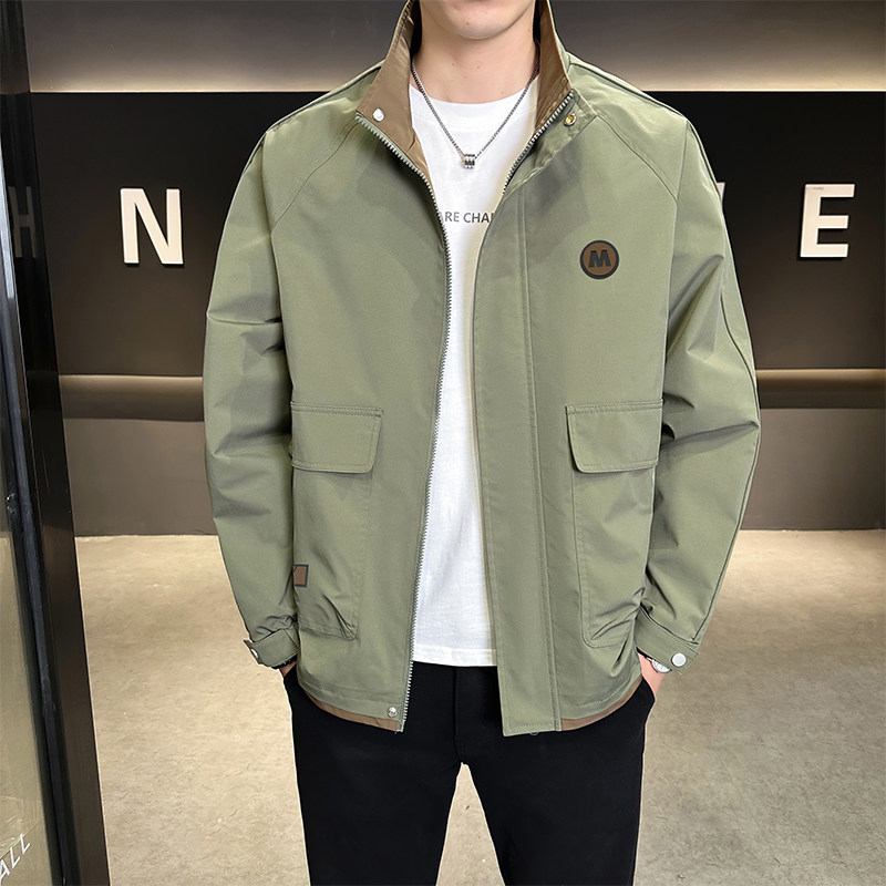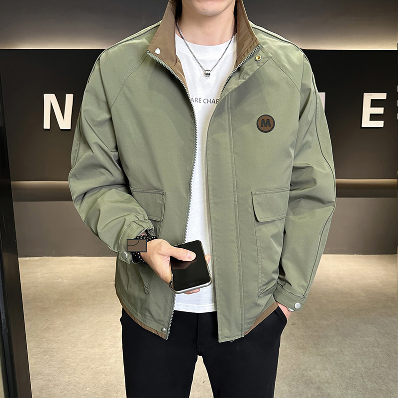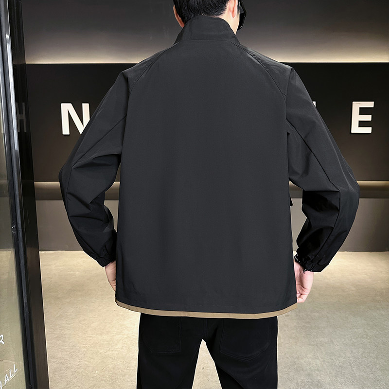 立领夹克男新款拼色大码上衣外套