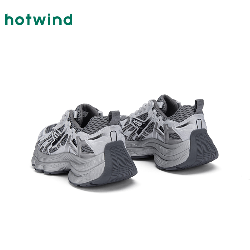 热风厚底老爹鞋女2025年冬季新款银灰色运动休闲鞋百搭增高女鞋子
