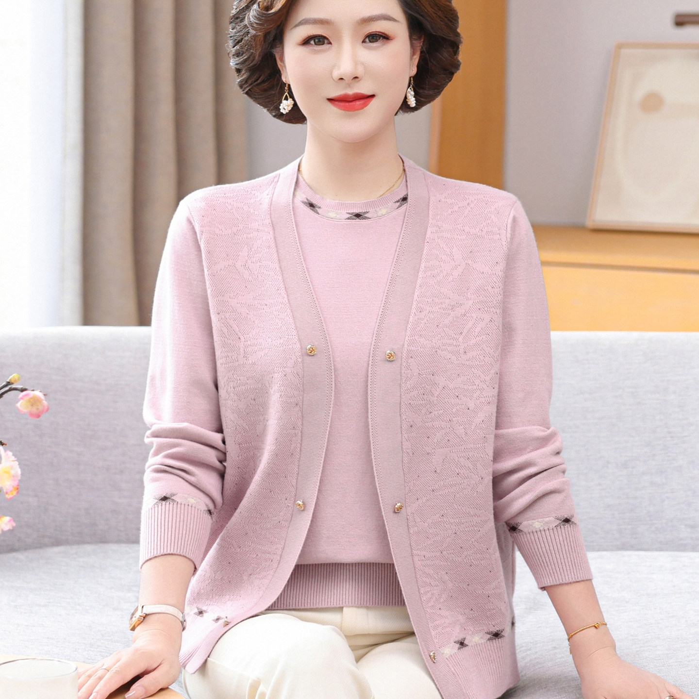 针织洋气小衫中年女薄款开衫外套