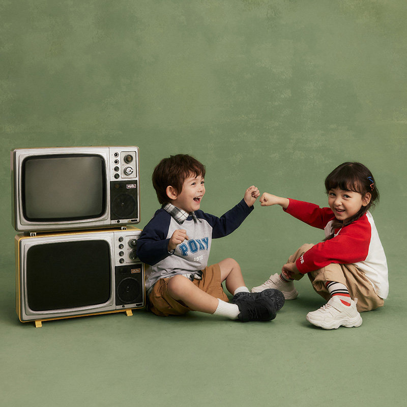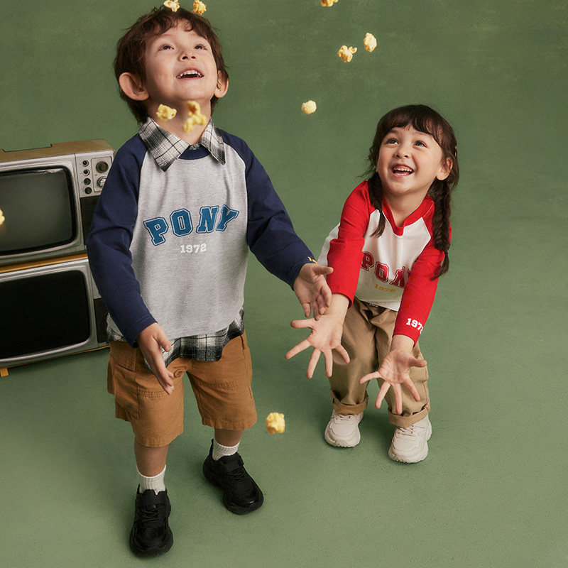 PONY男女童同款2025年复古老爹鞋黑色舒适休闲运动鞋233K1MD51